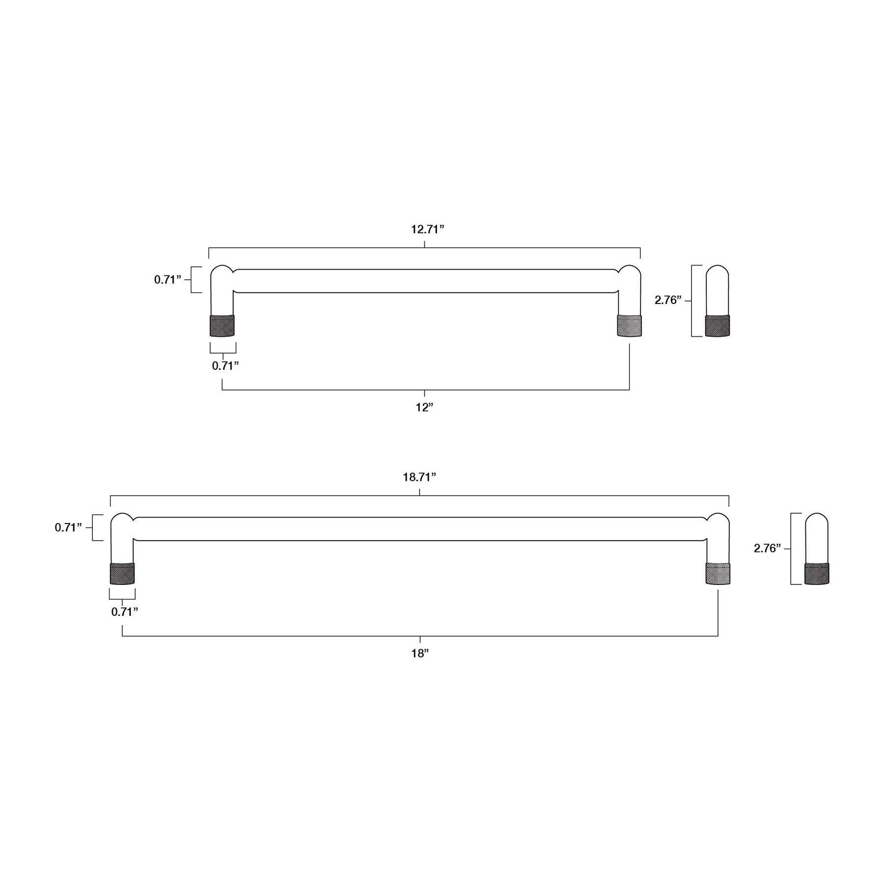 12 and 18 inch satin brass knurled appliance pulls.