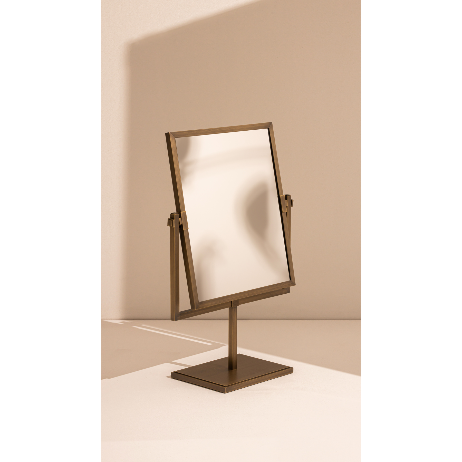 The product is hand polished to a smooth mirrored finish. The finisher then hand burnishes the product to achieve a natural-looking aged appearance.